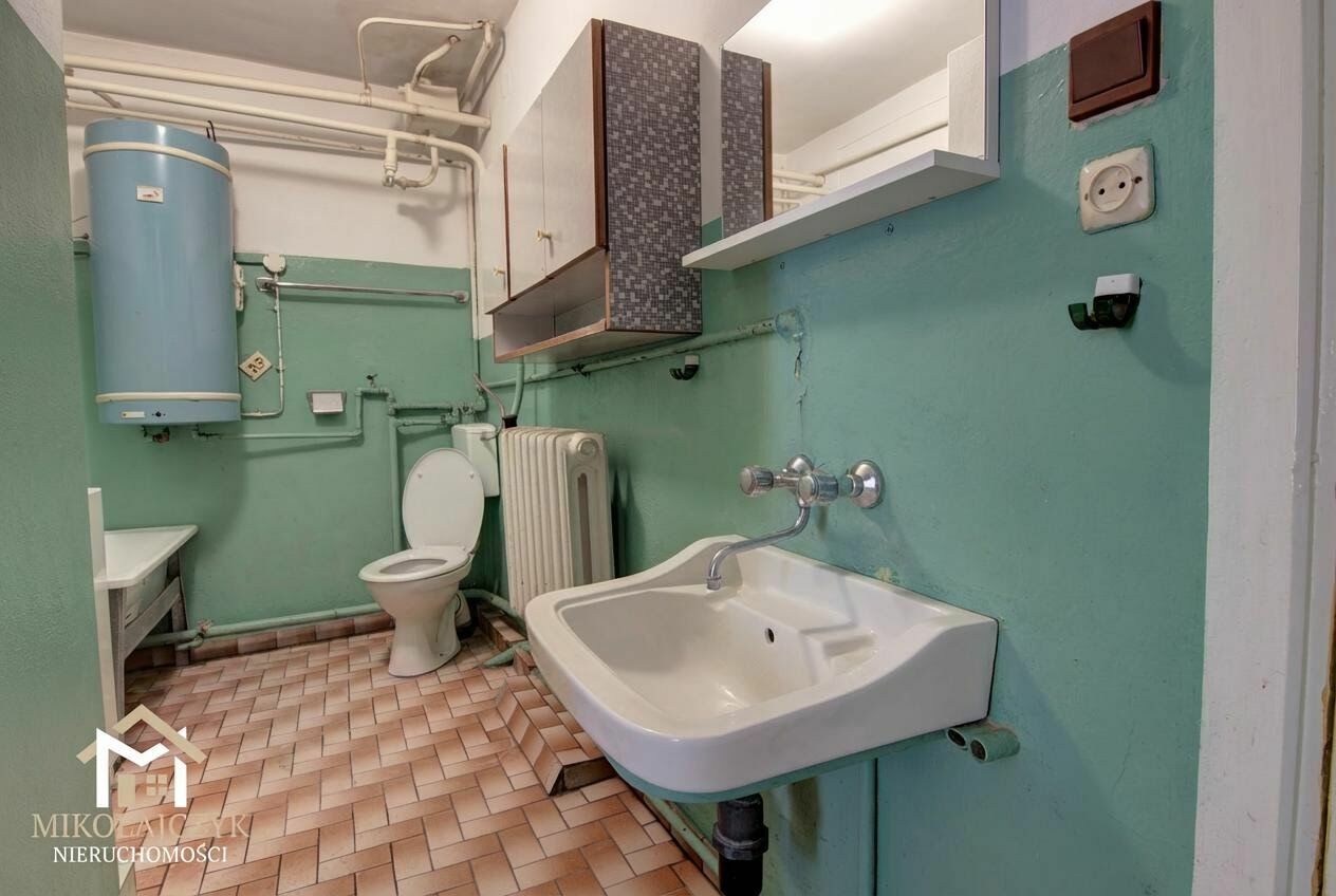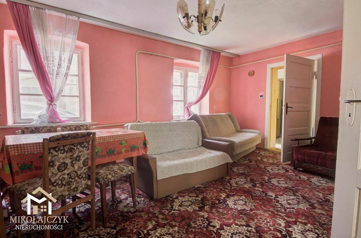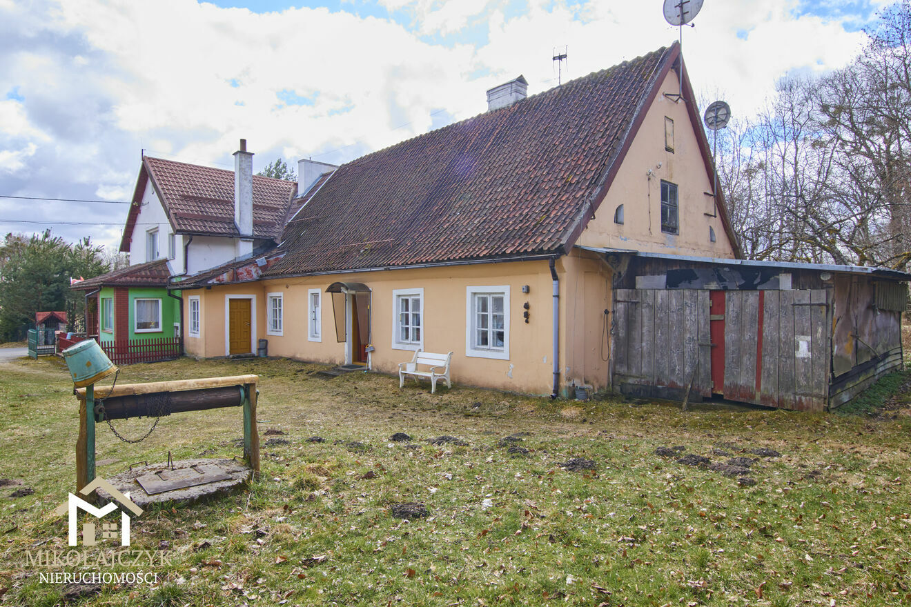 Dom z zabudową przyległą o powierzchni użytkowej ok. 119 m2. Budynek murowany wykonany w technologii tradycyjnej. Dach dwuspadowy, pokryty dachówką. Nieruchomość posiada piwnicę ze sklepieniem łukowym oraz przestronny strych. Za ogrzewanie i podgrzanie wody odpowiada klasyczny kocioł grzewczy. Budynek podłączony jest do wodociągu gminnego oraz posiada własną studnię z hydroforem. Ścieki odprowadzane są do przydomowej oczyszczalni.